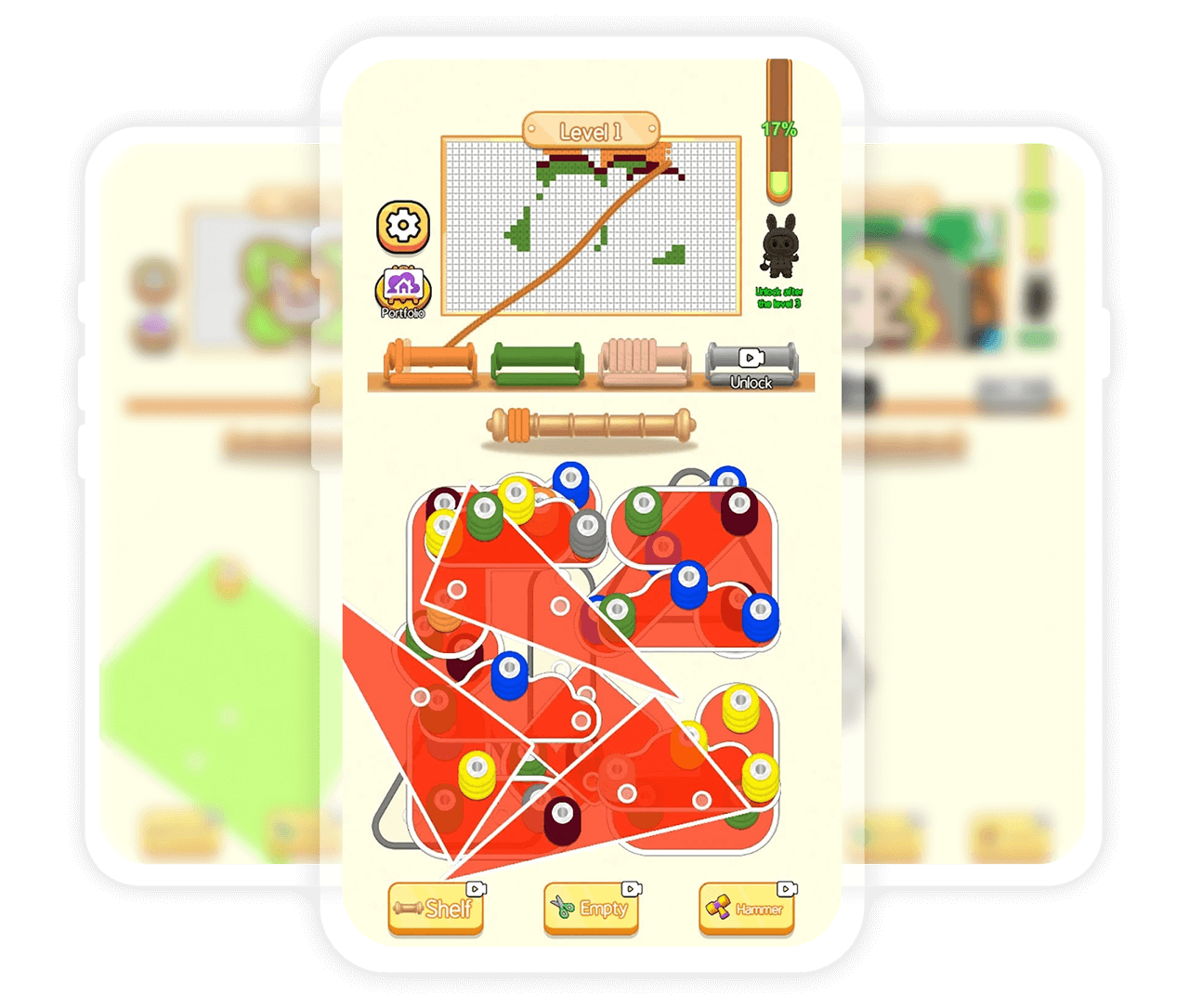 Collect and match three yarn balls of the same color to weave sections of a canvas. Progress through increasing levels of difficulty, requiring precise yarn sorting. Enjoy smooth 3D visuals as you unveil the complete artwork with each successful match.